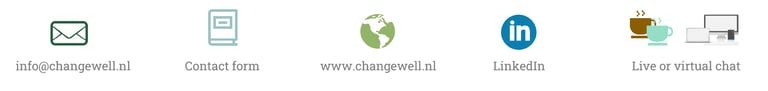 Contact via info@changewell.nl, contact form or any other manner suitable to you.